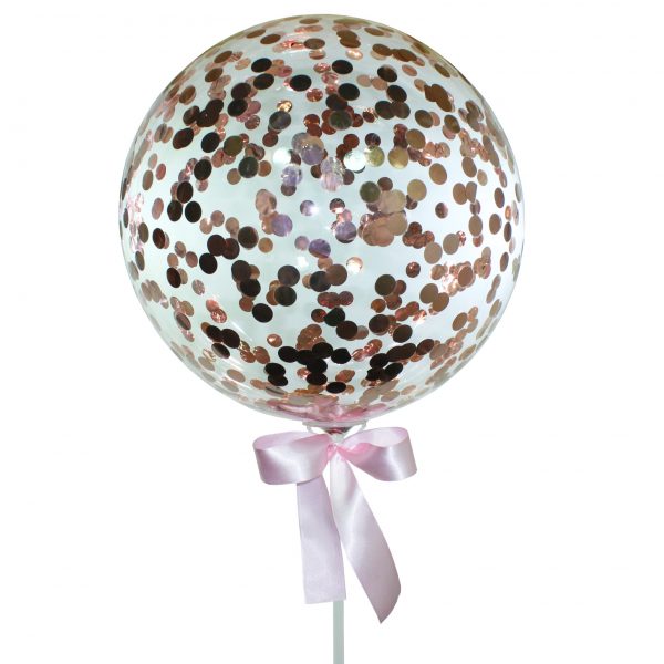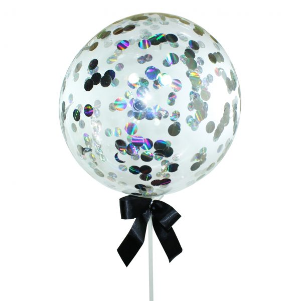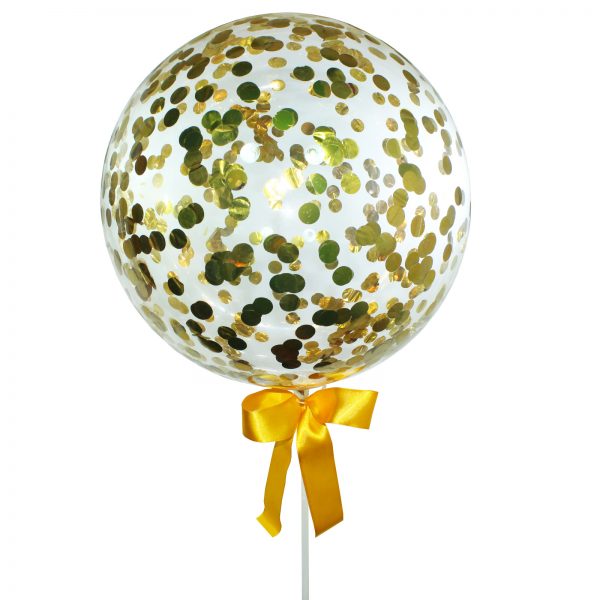 Balão bolha com confetes coloridos e vareta