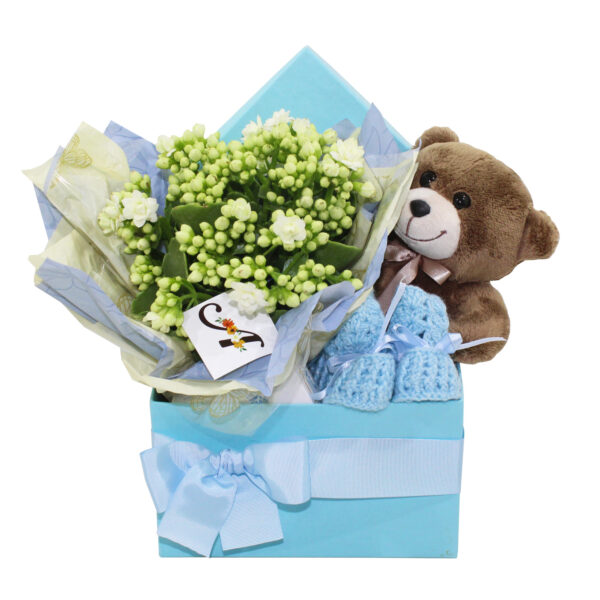 Caixa forrada com corino embalada em papel celofane contendo:
