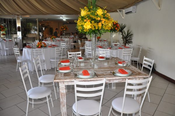 Arranjo de rosas, lírios, mini rosas, alstroemérias e orquídea chuva de ouro em vidro alto para centro de mesa