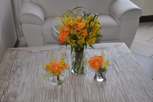 Conjuntos de arranjos de rosas e alstroemérias para mesa de apoio
